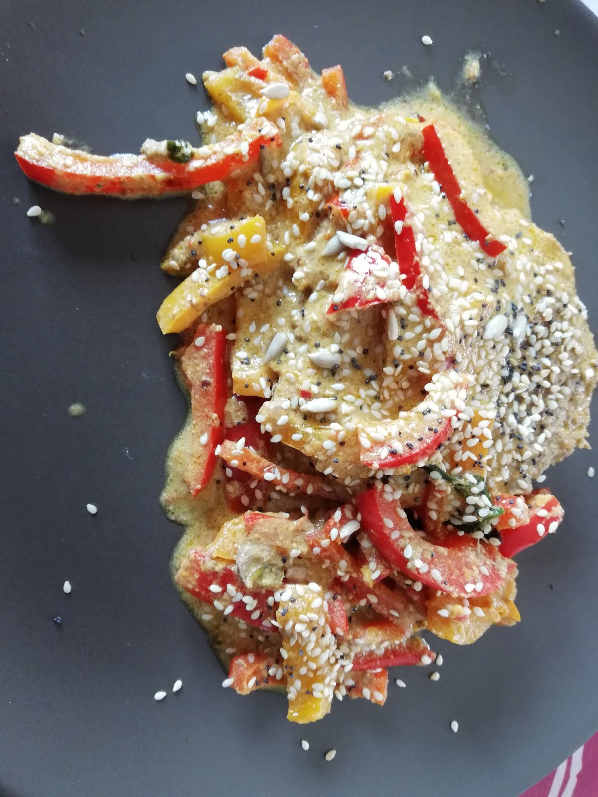 Tagliare i peperoni a striscioline, saltare con il ghee e i capperi fino ad ammorbidire in padella, mettere 2 cucchiai con la ricotta nel magic bullet e tritare a crema e metterla nuovamente in padella con ora anche gli hamburger fino a cuocere la carne.